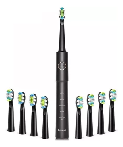 Cepillo de dientes eléctrico FAIRWILL modelo E11 PREMIUM, con 8 CABEZALES! mas de 2 años de limpieza! INDICADOR DE COLOR PARA CAMBIAR EL CABEZAL + INCLUYE FUNDA RIGIDA PARA VIAJES, UNICO!