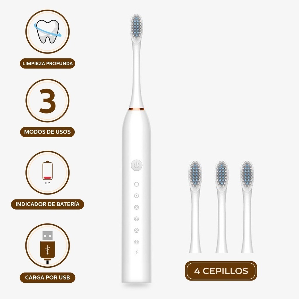 Cepillo Eléctrico Belfia modelo B10, 6 Modos de limpieza, 31.000 VIBRACIONES por minuto, cable USB , 4 cabezales incluidos e INDICADOR DE BATERIA BAJA.