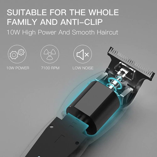 Las piezas que contactan la piel con la cabeza del cortador y el peine de posicionamiento son redondeadas para garantizar la seguridad y la comodidad durante el corte del pelo. La cabeza del cortapelos consiste en un cortador móvil y un cortador estático. Puede ponerse en contacto con seguridad con la cabeza del cortador en cualquier ángulo durante el proceso de trabajo.