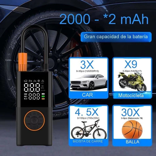 COMPRESOR DE AIRE - CARGADOR DE AIRE PORTATIL RECARGABLE PARA TODO TIPO DE RUEDAS (AUTO, BICI, ETC) SE CARGA POR USB