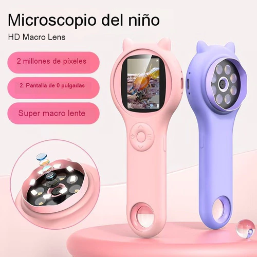 Microscopio infantil Belfia 553 de 200X, microscopio digital portátil - Equipado con una pantalla LCD de 2 pulgadas y tecnología de imagen digital HD de 1080P, este microscopio infantil portátil permite a los jóvenes científicos observar imágenes microscópicas vívidas y vídeos cautivadores en tiempo real, lo que garantiza que no haya ni un ápice de retraso durante la experiencia - Microscopio digital para niños: equipado con un aumento de 200x y un botón de ajuste del zoom de 4x, este microscopio ofrece una claridad excepcional y permite a los niños examinar de cerca las manchas de las mariquitas, las alas de las abejas, las venas en las plantas, los intrincados diseños de las monedas y las fibras de las telas, emprenden un emocionante viaje de exploración microscópica - Diseño de doble lente: el microscopio digital de 2 pulgadas es práctico para registrar las pequeñas sorpresas de la observación y, al otro lado de la lupa física, es fácil ver los pequeños objetos que te rodean en cualquier momento - Lupa portátil para niños: equipada con una pantalla IPS de alta definición de 2 pulgadas y una lupa de apertura circular, la parte trasera está equipada con tres niveles ajustables de 8 perlas de lámpara LED, diseñadas para adaptarse tamaño de agarre para niños. Esta lupa adopta métodos de obtención de imágenes tanto ópticos como electrónicos, lo que permite a los niños explorar el mundo microscópico de múltiples maneras. Un regalo para despertar la curiosidad: el microscopio de bolsillo para niños es un regalo único para el regreso al cole que no solo alegra a los niños, sino que también despierta su interés científico y su creatividad.