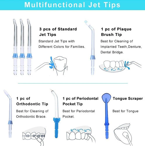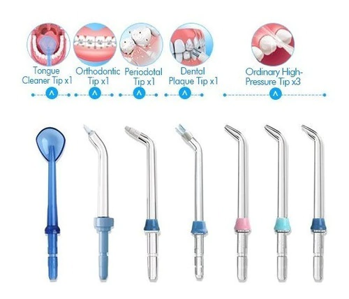 Las boquillas finas, de baja presión, pueden limpiar las bacterias dañinas en el bolsillo periodontal / debajo del brazo 6-7 mm. Agua pulsada, masaje de encías más cómodo.